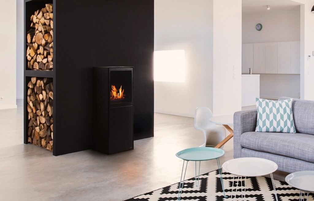 Freestanding scandinavian style fireplace