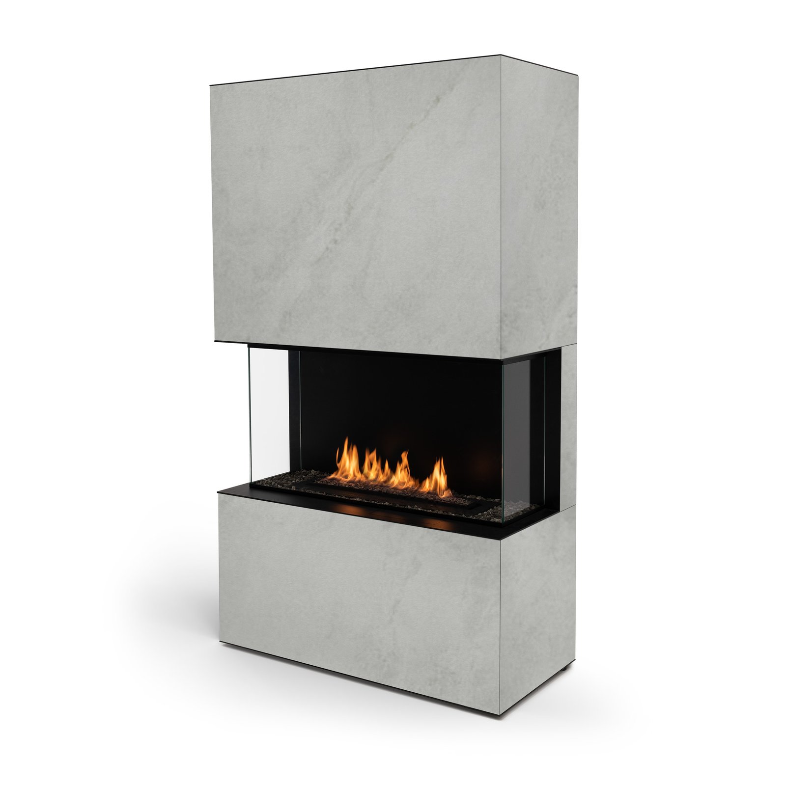 Stone Fireplace is an automatic BEV fireplace perfect for any indoor space – small or big thanks to its simple design. It can fit effortlessly with any interior style, especially modern, industrial or Scandinavian. The burner of Stone Fireplace is enclosed behind hot-tempered glass, but the heat is distributed through the hood of the fireplace, which allows to increase the temperature in the room. Quick and easy to use thanks to the Plug&Play solution.