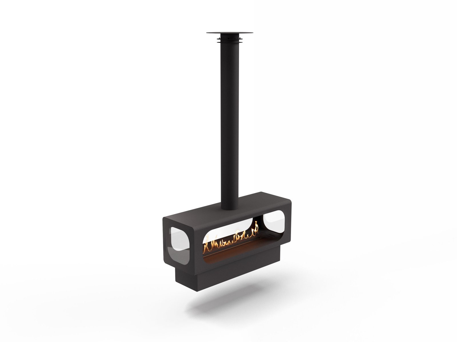 Modern design and exceptional flexibility The UFO Suspended bioethanol fireplace captivates with its futuristic and modern shape. Its suspended structure creates a stunning visual effect as it appears to float above the ground. Rounded edges and open sides give it a unique and stylish look, while transparent panels allow for an unobstructed view of the flames from every angle. This sleek design fits perfectly in minimalist interiors, loft spaces, and industrial-style environments.
