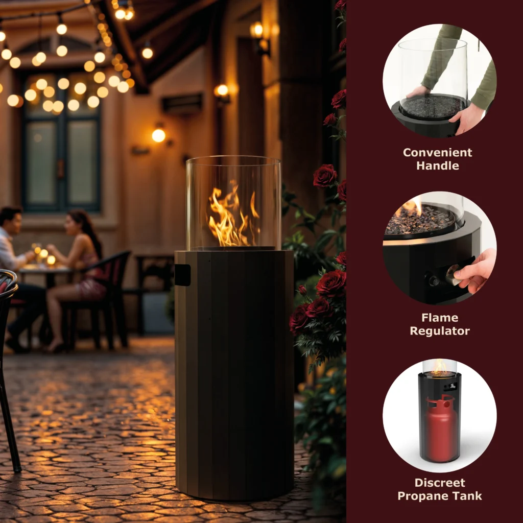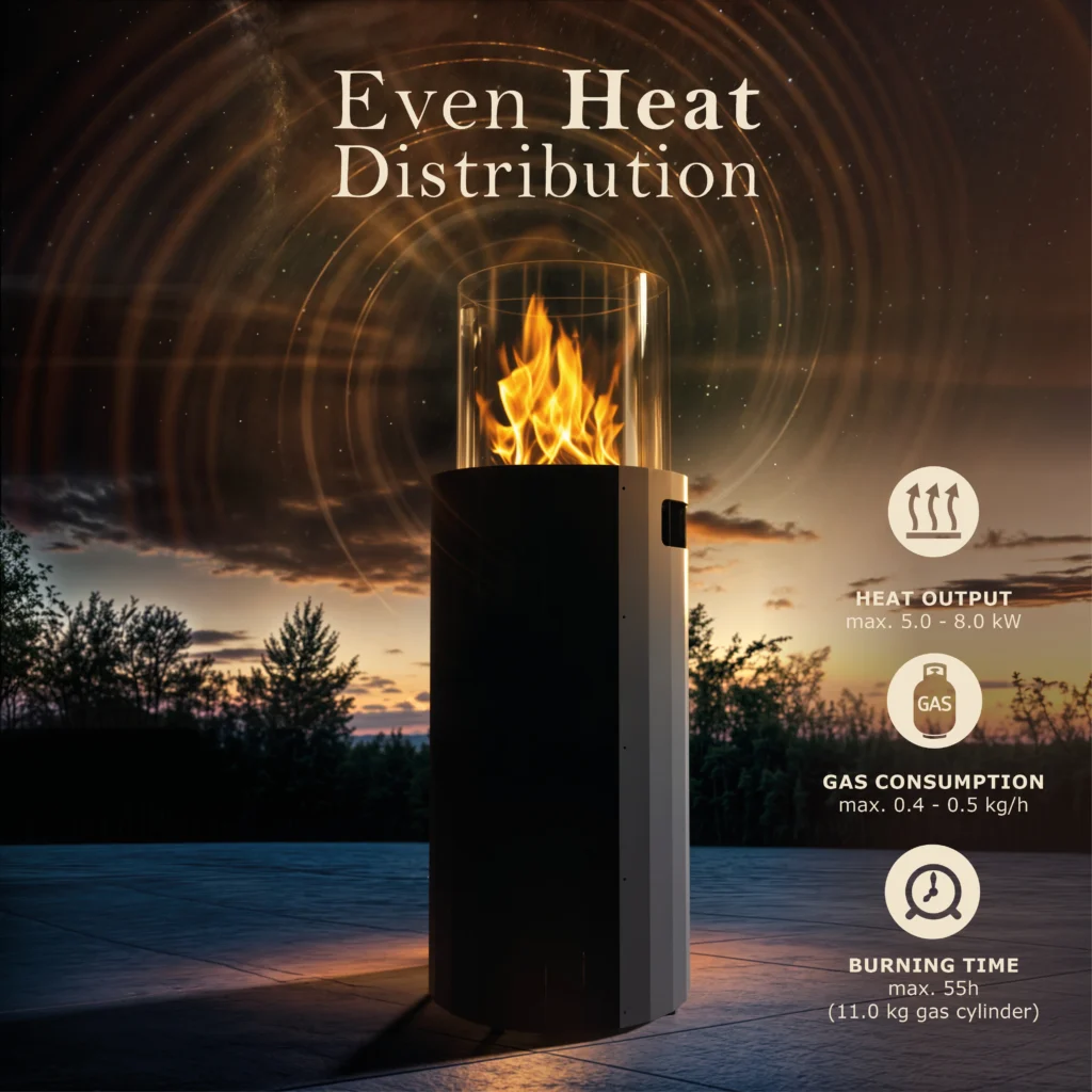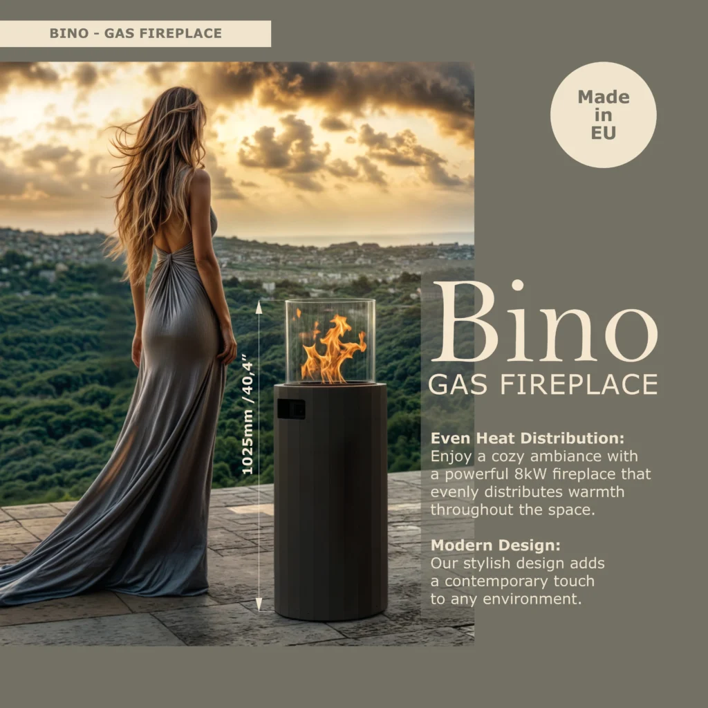 Enhance your garden or patio with the Bino outdoor gas fireplace. This patio heater is designed with both functionality and style in mind. Bino ensures that every evening in your gardenawill be special. Choose from two colors – Silk Grey and classic Jet Black. Place it on either side of your patio doors as columns of real flame, in the central point of your garden, or near your outdoor furniture to provide pleasant warmth and charm to your space.