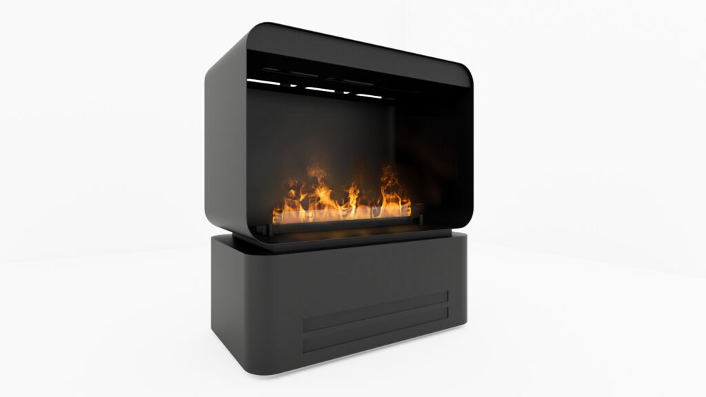 Modern design and complete flexibility in arrangement The AI fireplace stands out with its futuristic, modern look that seamlessly fits into various interior styles. Its rounded edges and minimalist form make it an ideal choice for contemporary spaces. Its unique design allows for versatile use, whether in living rooms or other environments.